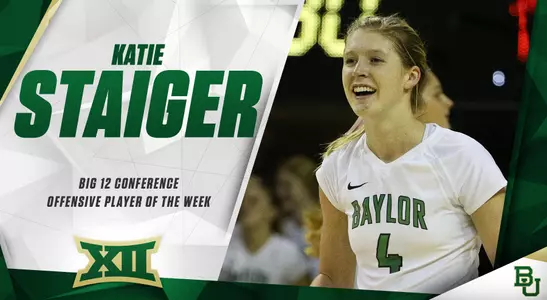 WACO, Texas - Baylor redshirt junior Katie Staiger was named the Big 12 Volleyball Offensive Player of the Week, announced by the conference office on Monday morning.