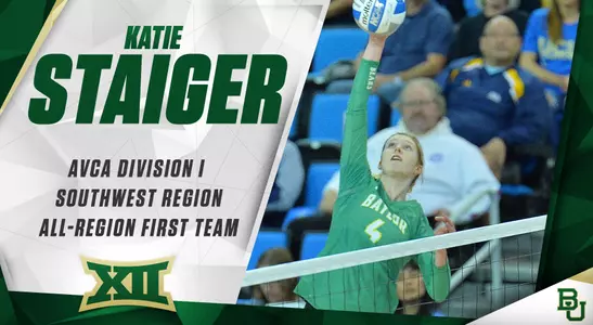 WACO, Texas - Baylor volleyball's Katie Staiger was voted to the 2016 American Volleyball Coaches Association Division I Southwest Region First Team, announced Tuesday morning by the AVCA and voted on by the region's head coaches.