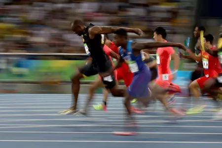 Bromell, who was hindered by an Achilles injury in the 100-meter Olympic final, faced a small deficit on his anchor run and tumbled across the finish line behind Jamaica's Usian Bolt and Japan's Aska Cambridge, but ahead of Canada's Andre De Grasse. The New Balance professional, who competed at BU in 2014 and 2015, was carted off the track in a wheelchair after his fall at the finish line.