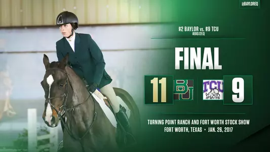 FORT WORTH - No. 2 Baylor equestrian (7-2, 2-1 Big 12) picked up a coveted road win over conference opponent, No. 9 TCU (3-4, 0-3), defeating the Horned Frogs, 11-9, on Thursday in a split-schedule meet.