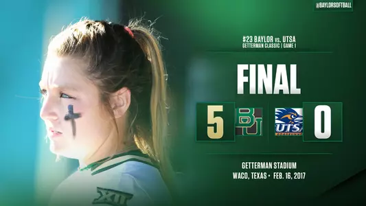 WACO, Texas - No. 23/24 Baylor softball (4-2) used a combined shutout and 13-strikeout effort from the BU pitching staff to open the 16th annual Getterman Classic with a 5-0 win over UTSA (1-3) on Thursday evening at Getterman Stadium.
