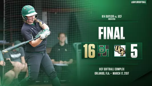 ORLANDO, Fla. - No. 14/15 Baylor softball (24-4) opened a three-game, weekend series with UCF with a bang, taking a 16-5 win over the Knights (14-11) in five innings at the UCF Softball Complex.