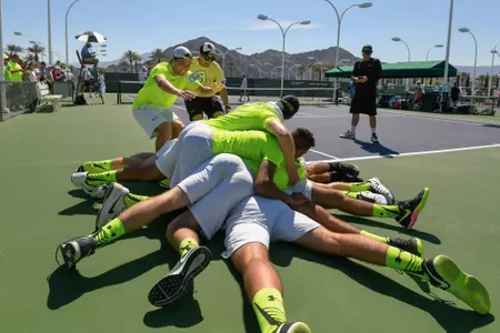 "It was a great performance by the guys. I am really proud of Max. It was his first time to clinch in that situation. That is really special for any player. We talk about that a lot. We want every guy walking up to every match hoping they get to be in that position. It is a really special thing as a college tennis player to be last match on with both teams cheering. I am really happy for Max that he got that opportunity as a senior and did a great job." -- head coach Matt Knoll on Max Tchoutakian clinching the match