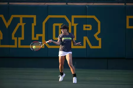 Sophomore Elizabeth Profit triumphed over Kaja Mrgole, 6-1, 6-3, at No. 1 singles to snag Baylor's second point. Hinojosa followed with a win over Sofia Duran, 6-3, 6-2, at the No. 5 spot.