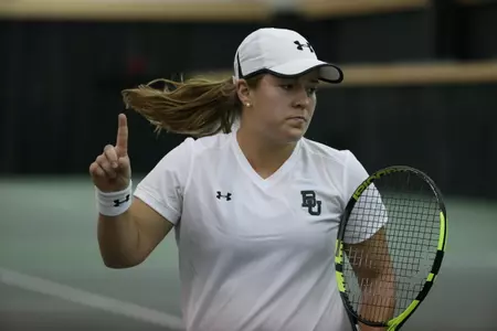 The Lady Bears snagged the doubles point to jump ahead after senior Shankle and sophomore Karina Traxler defeated Liza Buss and Macie Elliott, 6-1, at No. 1 singles. The Baylor duo of junior Theresa Van Zyl and sophomore Elizabeth Profit secured the point with a 6-1 win over Sarai MonarrezYesaki and Ellie Zogg at the No. 2 position.